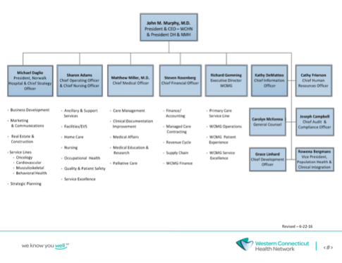In addition to his role as President of Norwalk Hospital, Mike Daglio will now report to me and assume the newly created role of Chief Strategy Officer. Growth is critical to our future and Mike is uniquely positioned to help drive market growth and seize business development opportunities. Mike will continue to lead the Oncology and Cardiovascular service lines and will assume leadership responsibility for the growth and management of the Musculoskeletal and Behavioral Health service lines, extending our commitment to these critical practice areas across the Network. Mike will lead the planning and execution of new programs/strategic partnerships for the Network and drive execution of key real estate and construction projects. Joe Carofano, Vice President of Marketing and Communications and Sally Herlihy, Vice President of Planning will now report to Mike.